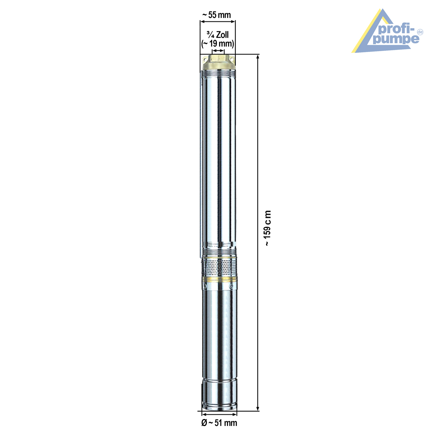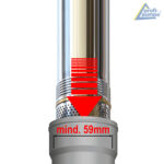 Mit 2 Zoll wird die Brunnenpumpe zur Problemlöserin: Die schlanke Tiefbrunnenpumpe hat einen Durchmesser von nur ca. 51mm. Die Brunnenpumpe kann optimal in engen Schächten mit einem Mindest-Durchmesser von 60mm eingesetzt werden.