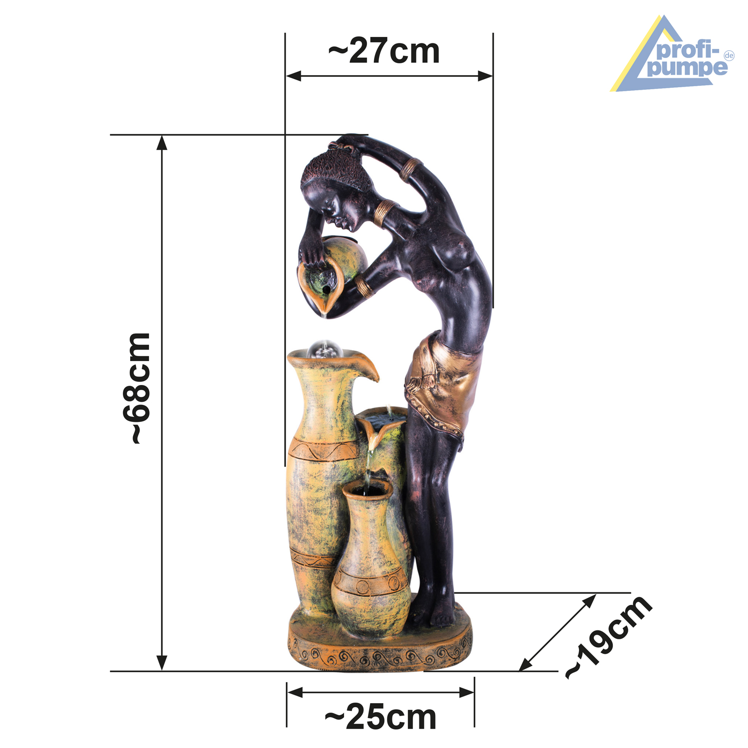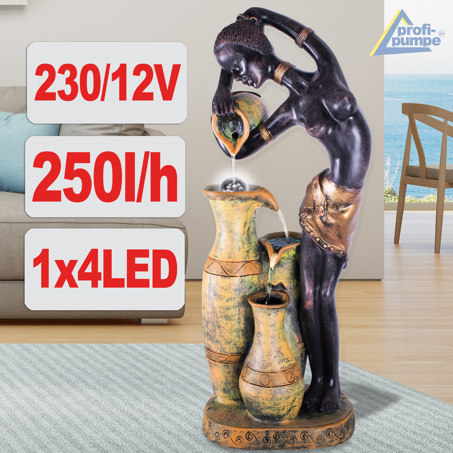 Gartenbrunnen im Stil afrikanischer Kunst mit LED-Licht