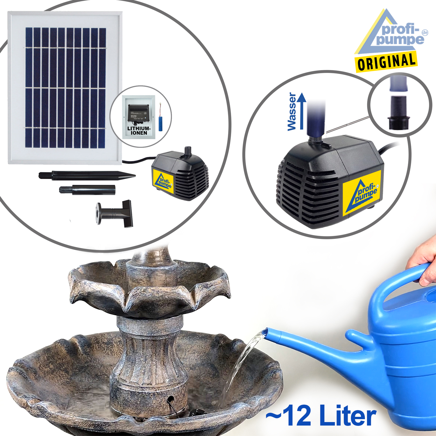 B-Ware Solar – Brunnen “KLASSIK-GARTEN-2-1” mit LiIon-Akku & LED-Licht(Neu)