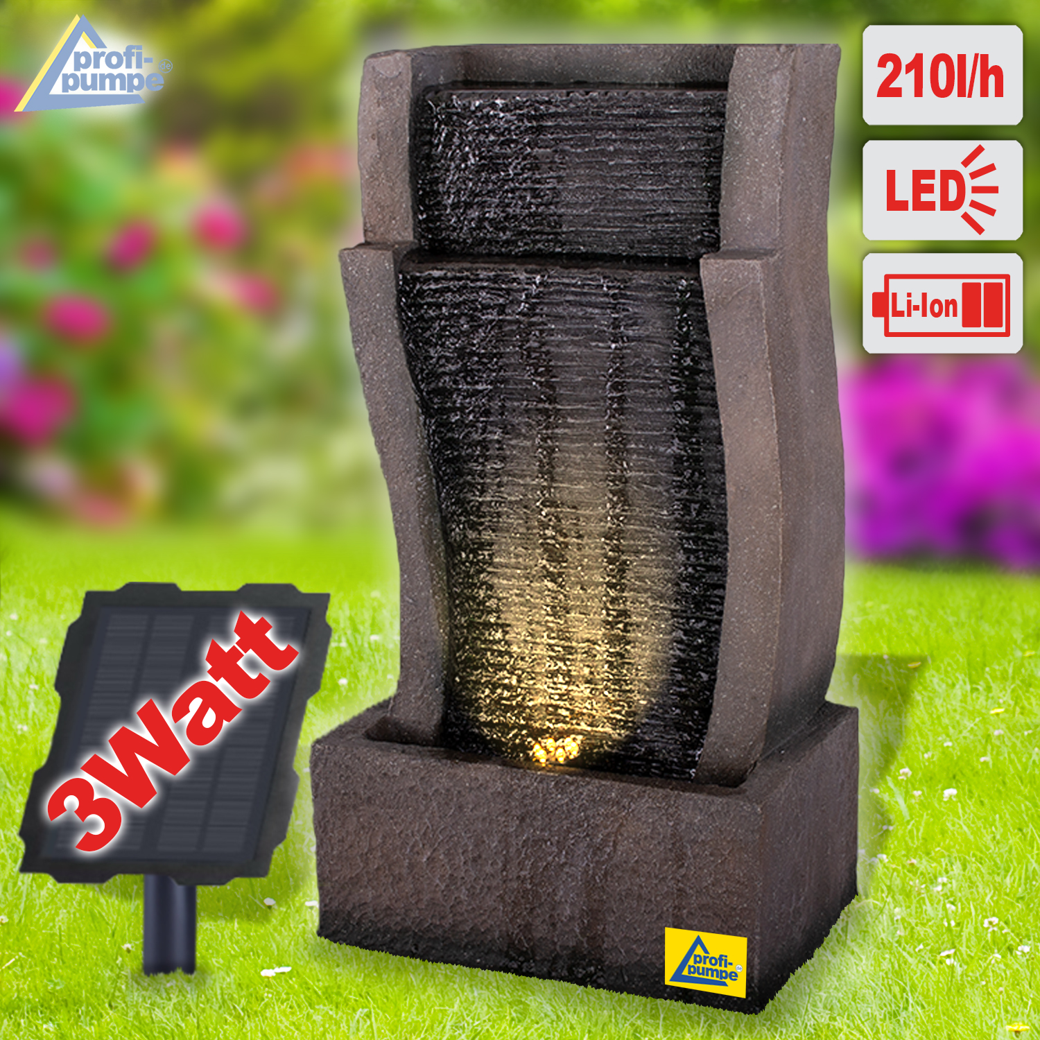 Solarbetriebener Garten-Brunnen mit Li-Ion Akku und LED-Licht