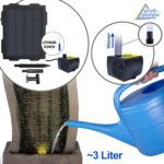 Poznámka: Frost kann zu Schäden am Gartenbrunnen und der Pumpe führen. Bei Frostgefahr muss der Gartenbrunnen und die Pumpe entleert werden, mit klarem Wasser gespült und trocken eingelagert werden. Dann haben Sie sehr lange Freude daran!