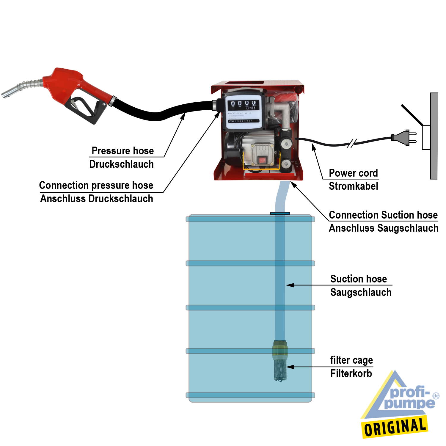 230-Volt-Diesel-Pumpe mit Automatik-Zapfpistole, Zählwerk und Zubehör