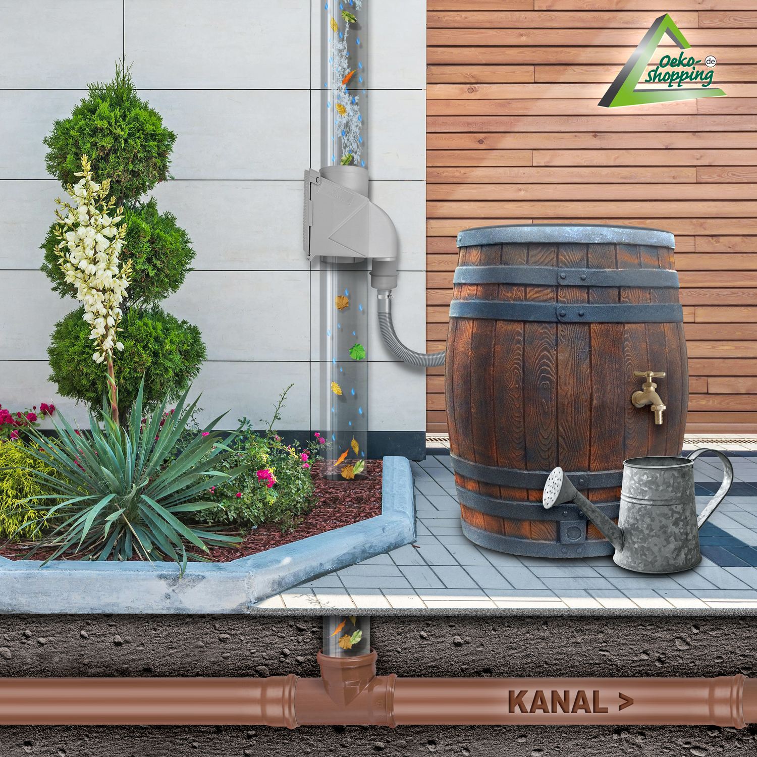 Regentonnen, Regenfilter, Gartenbrunnen, Airbrush an: