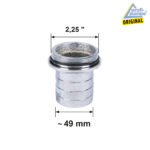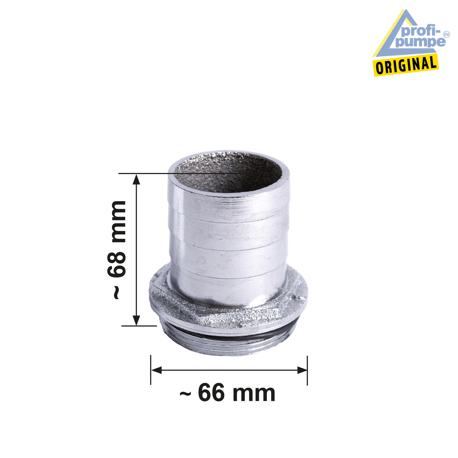 Der Grauguss Adapter mit einem Außengewinde von AG 2 ¼“ (2,25 Zoll) ist mit einem Anschluss für Schläuche mit einem Innendurchmesser von 49 mm geeignet. Das Verbindungsstück misst eine Gesamtlänge von 68 mm und einen Gesamtdurchmesser von 66 mm .