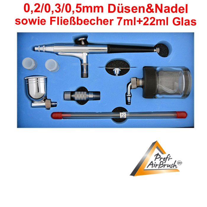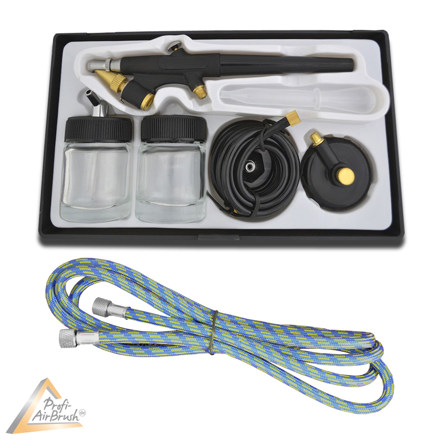 inklusive Profi-AirBrush Pistole “Gravity-Dual-Action” 134s und 1,8m Schlauch
