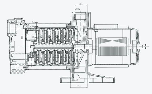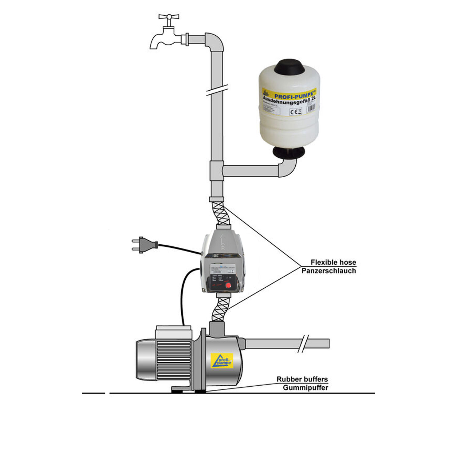 - fünfstufige Kreiselpumpe mit 5,6 bar Förderdruck und 5400 l/h Fördermenge