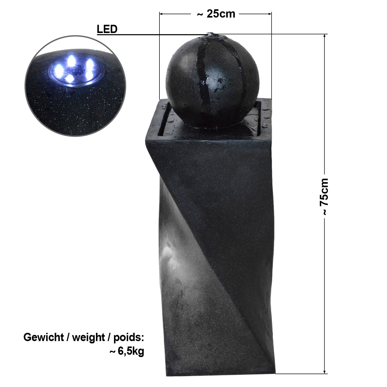 Solar – Brunnen “”GRANIT-BLACK-3″” mit Li-Ion-Akku und LED-Licht