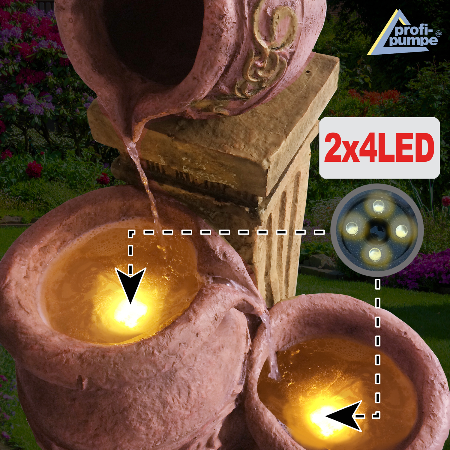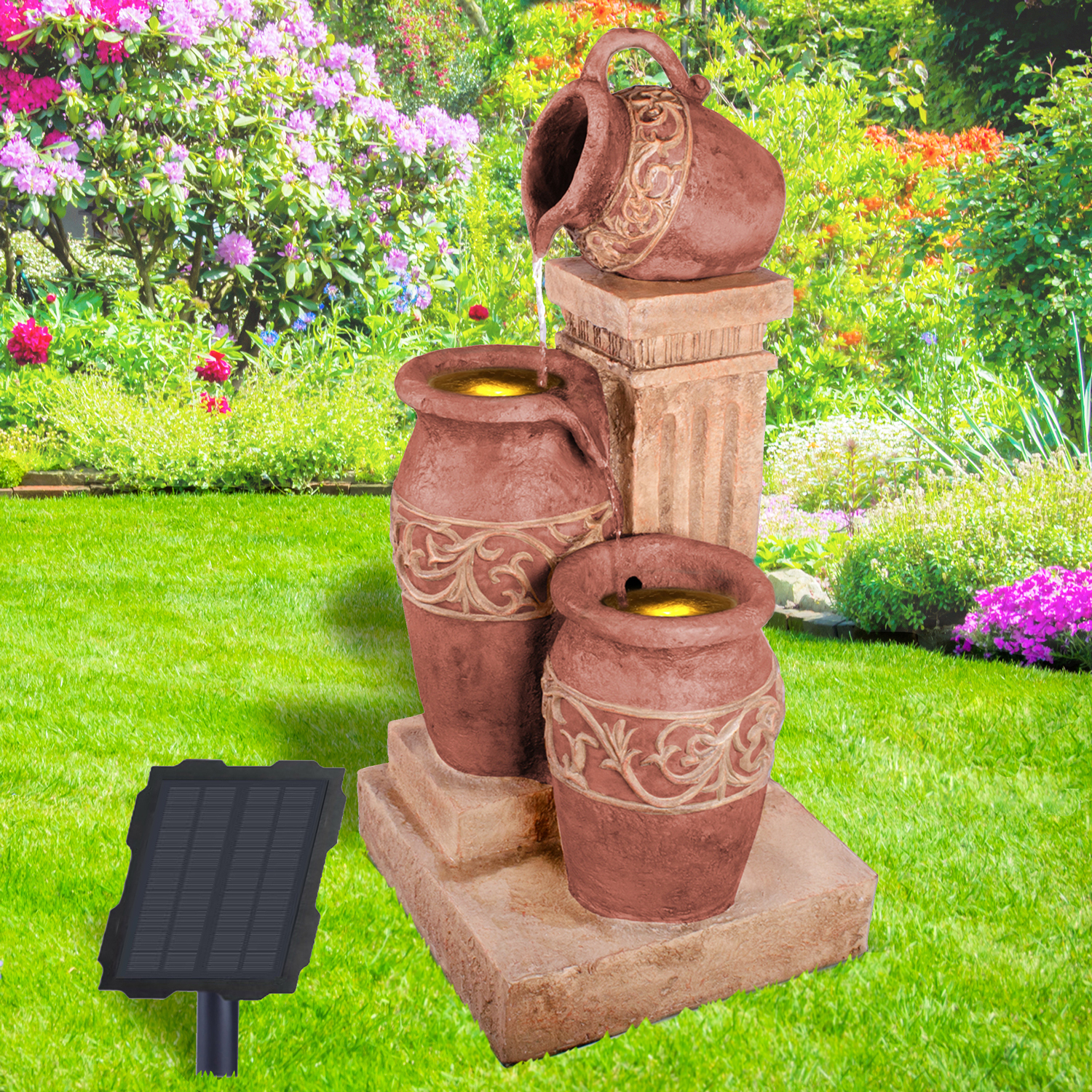 Solarbetriebener Garten-Brunnen mit Li-Ion Akku und LED-Lichter