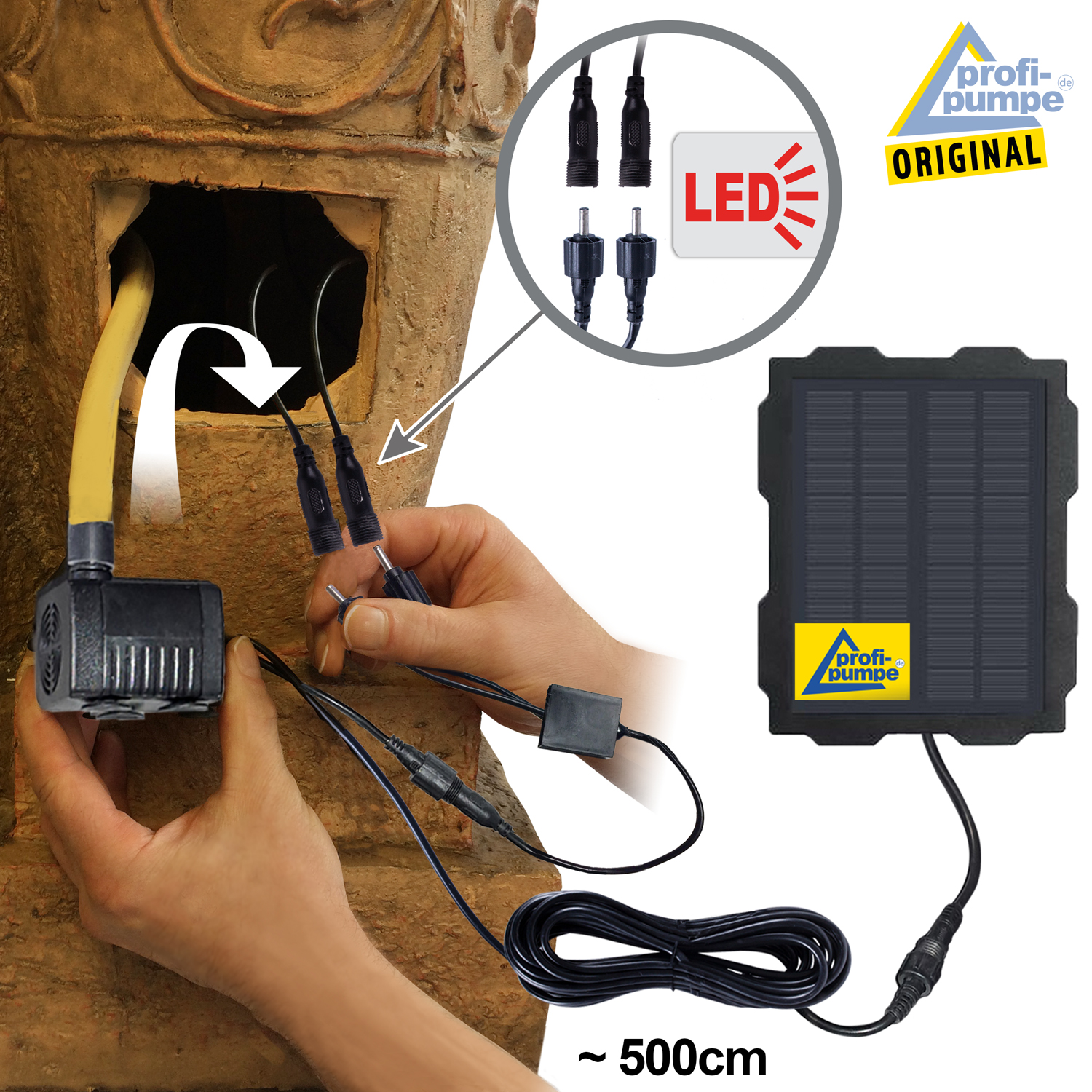 Platzieren Sie diesen Solarbrunnen einfach an einer beliebigen Stelle in Ihrem Garten. Durch das einfache Steckprinzip und dem Solarpanel ist er schnell aufgebaut. Ein weiterer Vorteil ist, dass Sie an keine Steckdose gebunden sind und das lästige Verlegen des 230V-Kabels entfällt. Kein Ärger mehr mit den durch Nagetiere beschädigten Kabeln und dadurch verursachten Stromausfällen. Außerdem können Sie das Solarsystem nach Ihrem Geschmack effektvoll positionieren. Der Gebrauch des Solarpanels ist auch die sichere Alternative zu der 230V Steckdose. Bitte bedenken Sie, dass das Solarpanel stets im vollen Sonnenlicht zu platzieren und auszurichten ist, da sonst keine Pumpenfunktion garantiert werden kann.