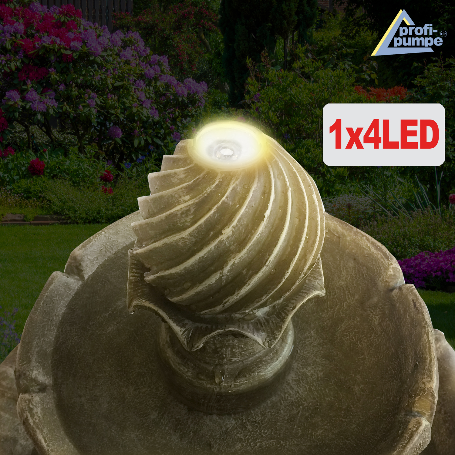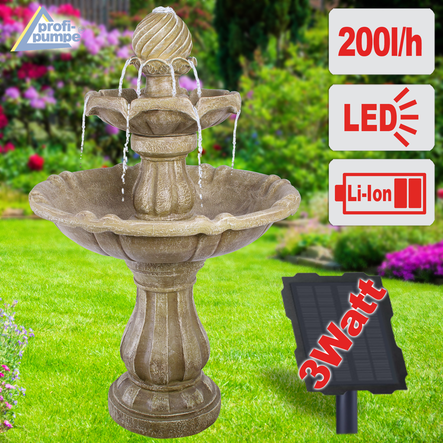Solar – Gartenbrunnen & Wasserspiel “KLASSIK-GARTEN-3” mit LED-Licht und Li-Ion-Akku