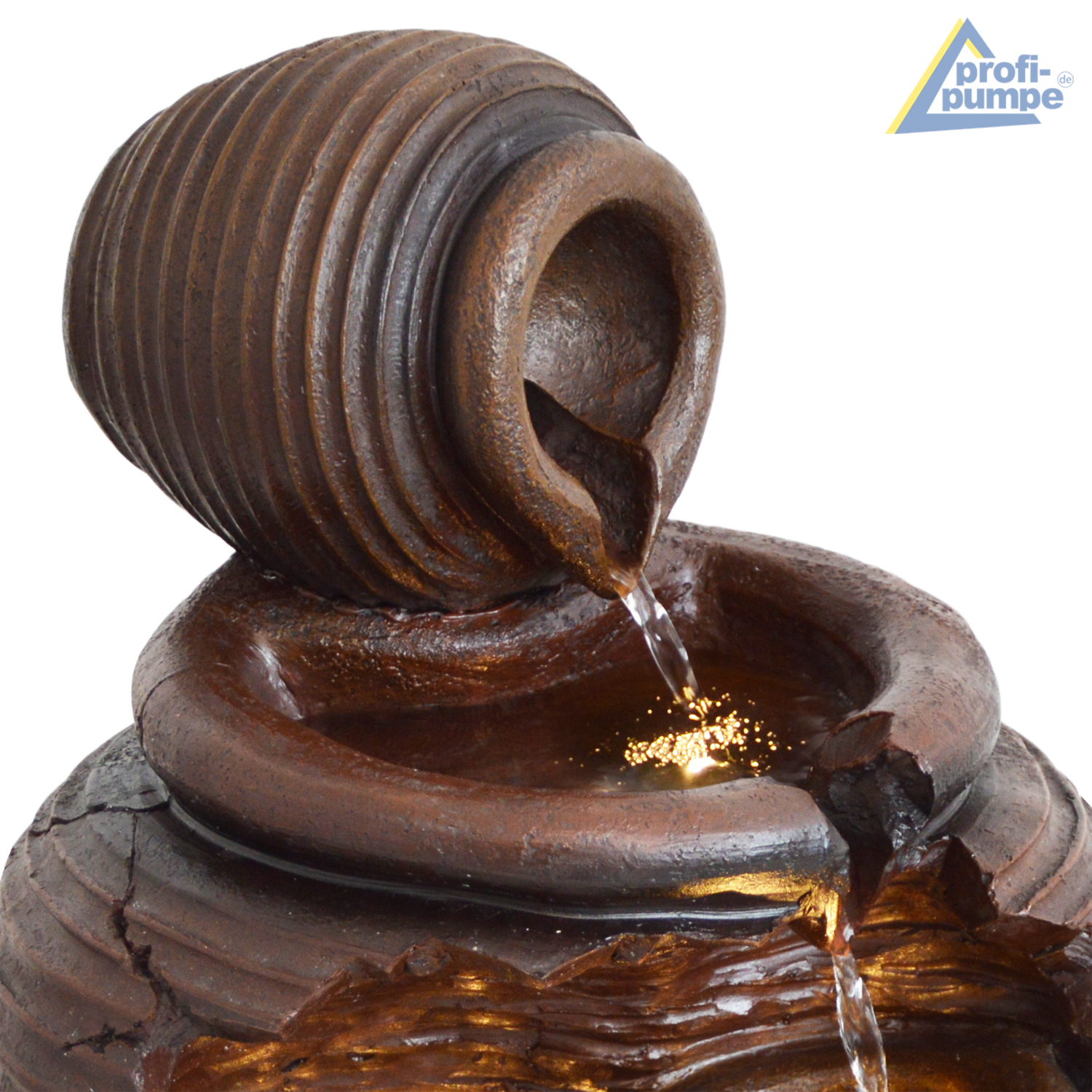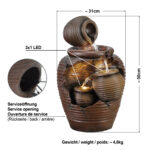Der Wasserbrunnen “4-AMPHOREN” ist für den Innen- und Außenbereich geeignet. Betrieben wird der stilvolle Garten- und Zimmerbrunnen mit einem 230/12-Volt Netzadapter. Mit den wirklichkeitsgetreuen Tonkrügen sorgt der Indoor- und Outdoor-Brunnen für eine natürliche Atmosphäre und Entspannung. Das Lebenselixier Wasser belebt Wohnzimmer, Esszimmer, Flure und Eingangsbereiche, Wintergärten oder Balkone, Terrassen und Gärten im privaten wie gewerblichen Umfeld.