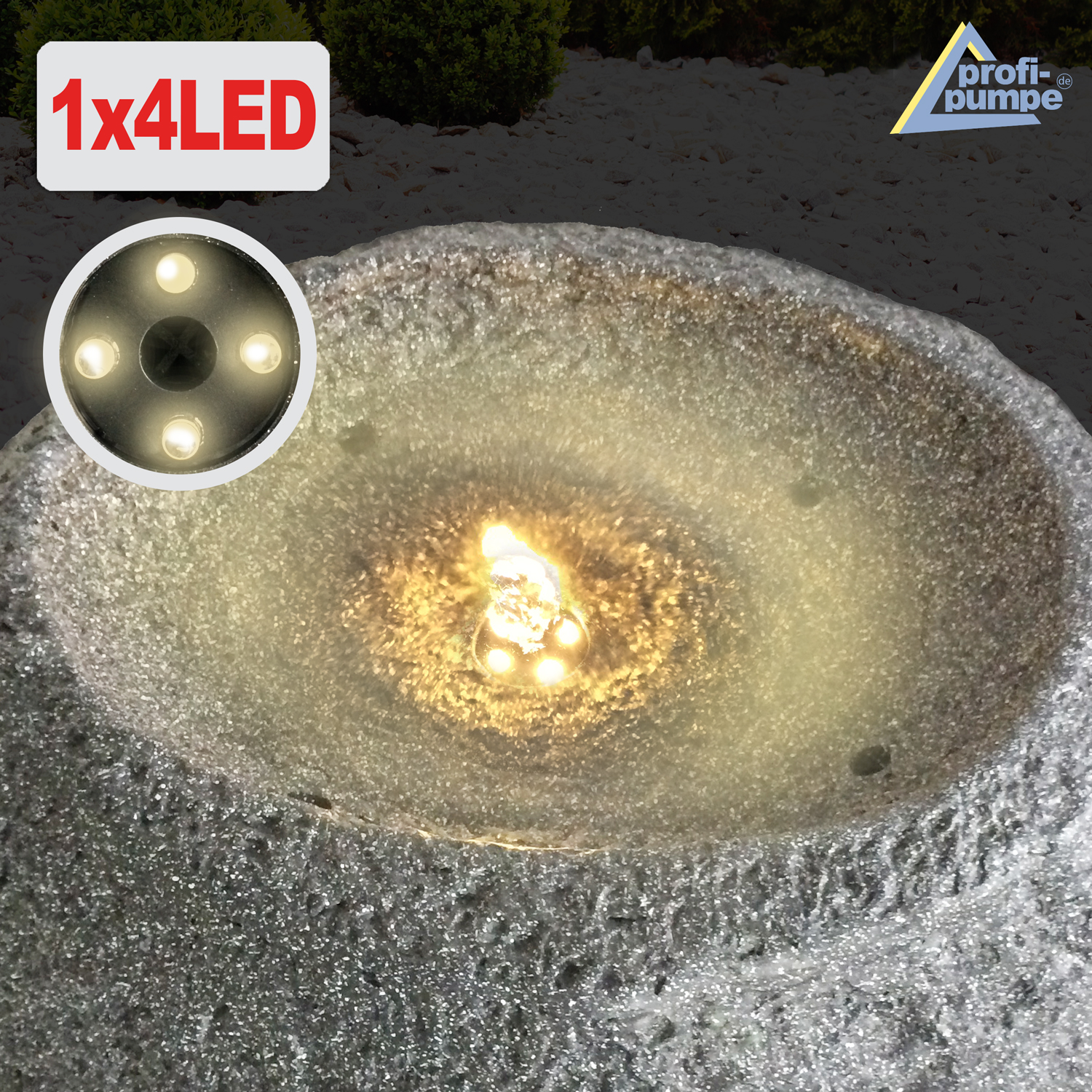 Der Garten- und Zimmerbrunnen ist sowohl bei Tag als auch bei Nacht der perfekte Hingucker. Die mitgelieferte LED-Beleuchtung sorgt für die perfekte Illumination. Die LED-Lichter des austauschbaren LED-Rings erstrahlen in einem warmen Weiß.