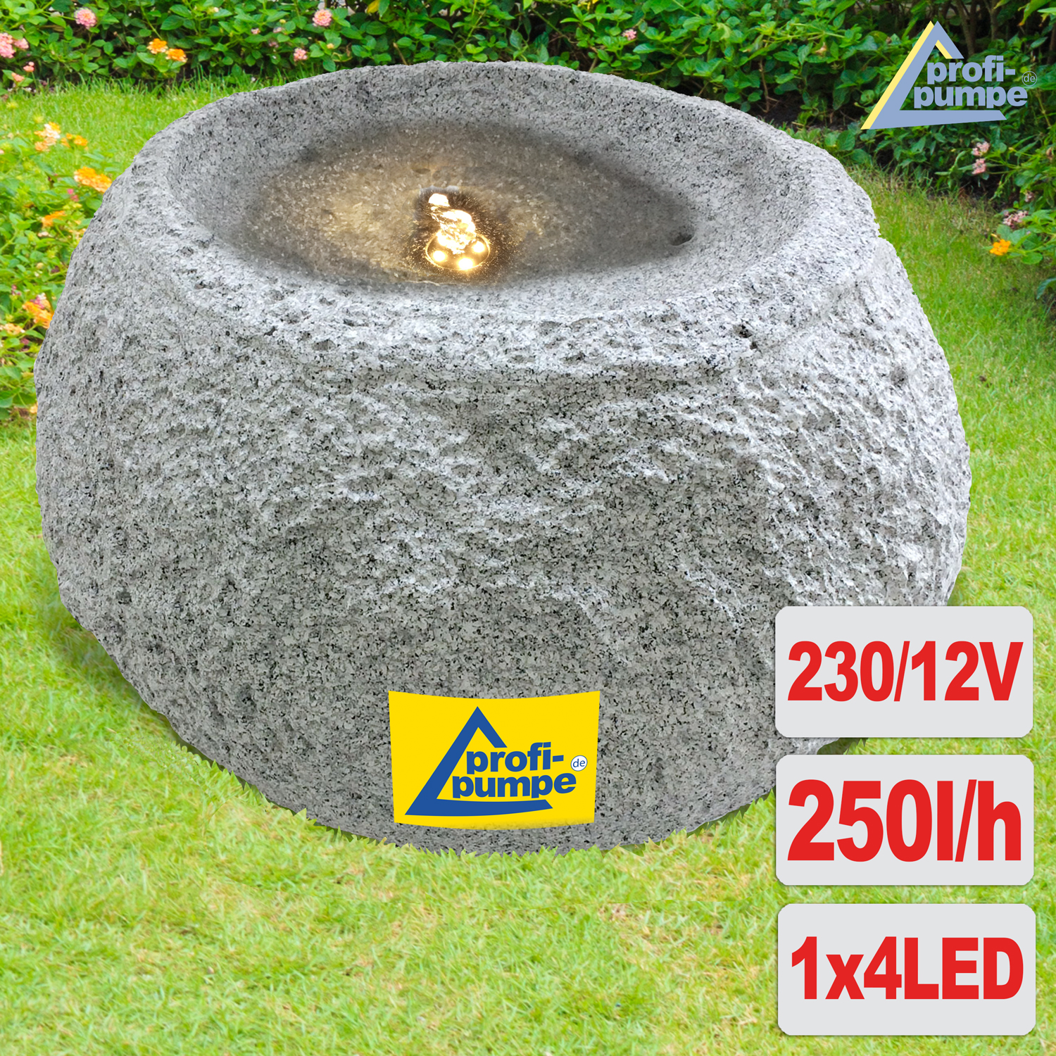 Gartenbrunnen “GRANIT-QUELLSTEIN” mit 1 austauschbaren LED-Leuchtring (1*4)