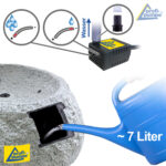 Note: Frost kann zu Schäden am Gartenbrunnen und der Pumpe führen. Bei Frostgefahr muss der Gartenbrunnen und die Pumpe entleert werden, mit klarem Wasser gespült und trocken eingelagert werden. Dann haben Sie sehr lange Freude daran!