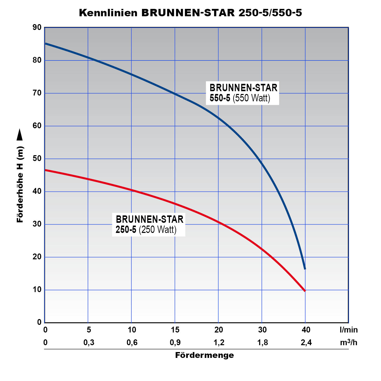 Den optimalen Wirkungsgrad erreicht die Pumpe bei 1.500l/h und 30m Förderhöhe. Mit 550 Watt Leistungsaufnahme ist diese Brunnenpumpe nicht nur eine Problemlöserin für enge Bohrungen, sondern auch eine echte Energiespar-Pumpe!