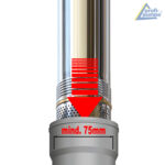 Mit 2,5 Zoll wird die Brunnenpumpe zur Problemlöserin: Die schlanke Tiefbrunnenpumpe hat einen Durchmesser von nur 65mm. Die Brunnenpumpe kann optimal in engen Schächten mit einem Mindest-Durchmesser von 75mm eingesetzt werden.