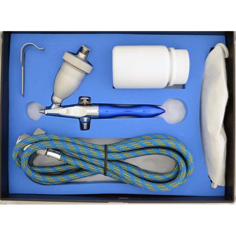 Ideal for cosmetics & beauty (airbrush nail art, makeup, hair coloring, hair care, spray tanning), body art (body painting, tattoo, mask design), hobby (flowers/ flower arrangements, model making, ceramics/ pottery, textiles), small car designs (gas caps/ helmets), technical illustrations/ photo touch-ups and food decoration (cakes/ cupcakes). The possibilities for airbrushing are practically unlimited.