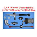 Die Airbrush-Pistole “Double-Action-Gun 134s” mit 0,2mm / 0,3mm / 0,5mm NADEL/DÜSE Kombination und 2 verschiedenen Farbbehältern (7ml und 22ml) ist besonders für den Beginner zum Kennenlernen der einzelnen Techniken und für ein zügiges Arbeiten optimal geeignet. Damit lassen sich sowohl feine Linien ziehen, als auch größere Flächen airbrushen. Für größere Farbmengen wird der 22ml-Glasbehälter und für kleinere Farbmengen der 7ccl Metallaufsatz verwendet. Mit der UNIVERSAL AIRBRUSH-PISTOLE DOUBLE-ACTION 134s macht das Hobby richtig Spaß!