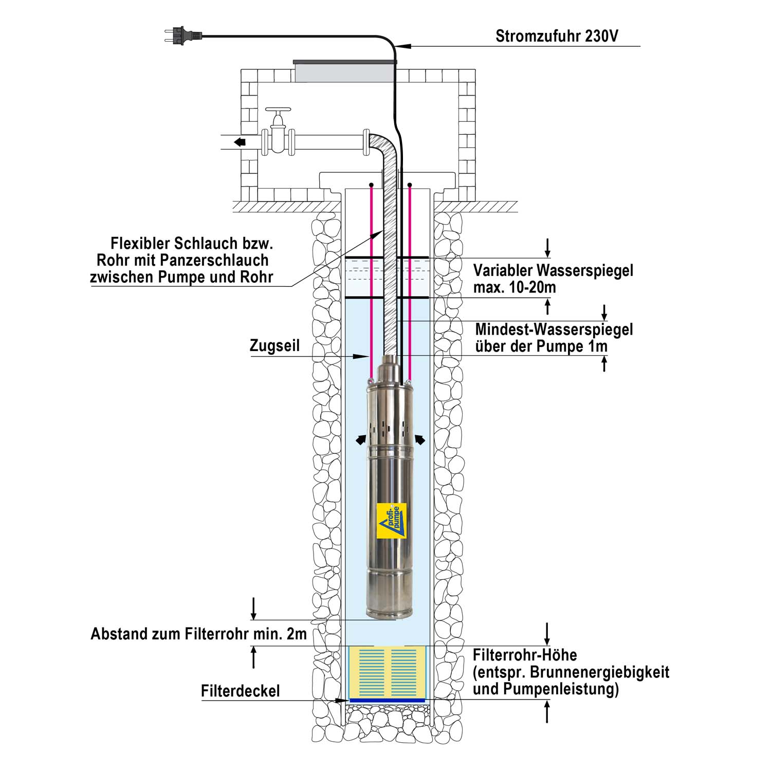 Förderhöhe max. 60m | Brunnentiefe ca. 45m | mit 15m Kabel