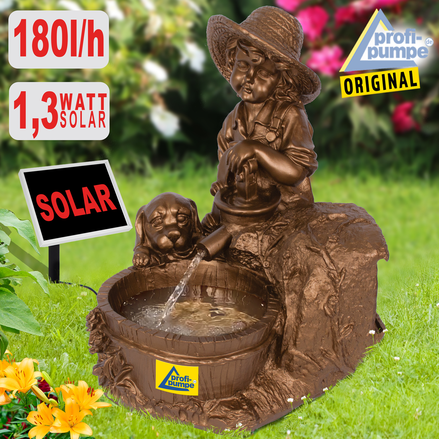 Solar Teichpumpen-Set “KNABE mit HUND am BRUNNEN” – Das Lebensgefühl für Ihre Sonnen-Oase!