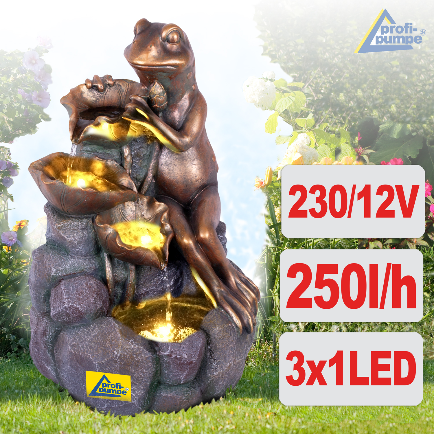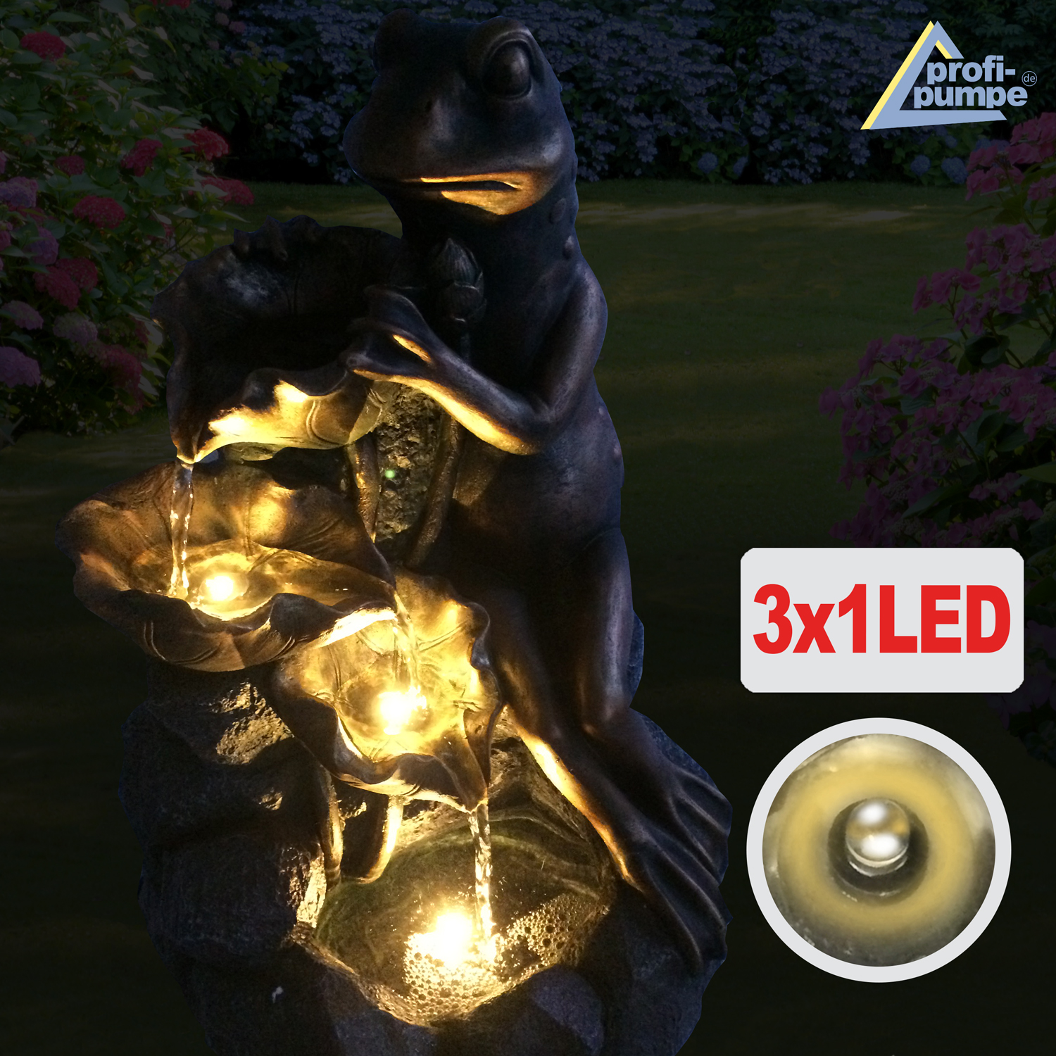 Gartenbrunnen “BLÜTEN-FROSCH” mit 3 austauschbaren LED-Lichtern (3*1)