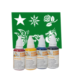 Mit dem “Fancy Tattoo Airbrush Set” erhalten Sie 4 Airbrush-Tattoo Grundfarben sowie 6 Schablonen mit trendigen Tattoo-Motiv-Vorlagen für die Erstellung von professionellen Airbrush-Tattoos – lassen Sie Ihrer Kreativität freien Lauf!