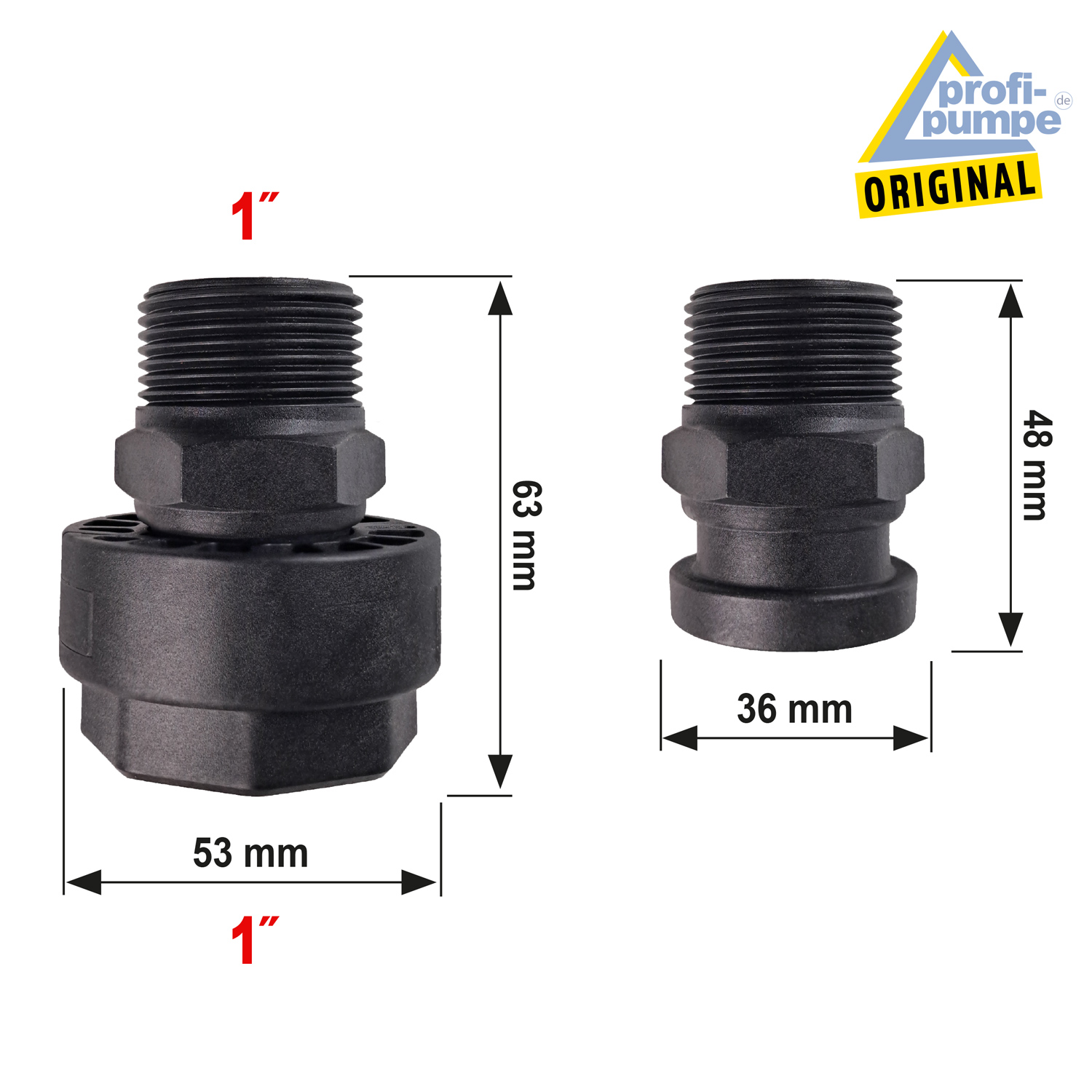 Verschraubung Kunststoff 1″ AG x 1″ IG mit Überwurfmutter und Dichtung