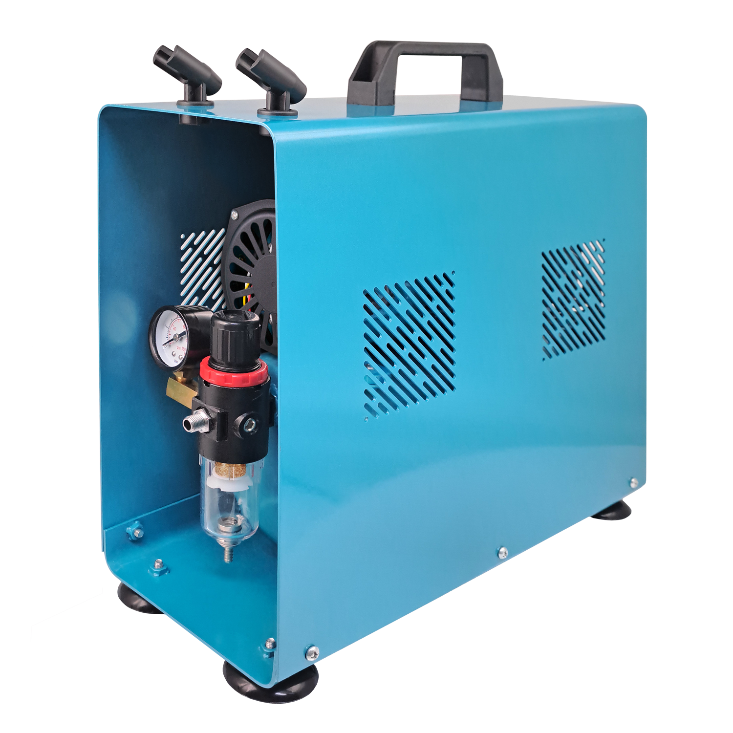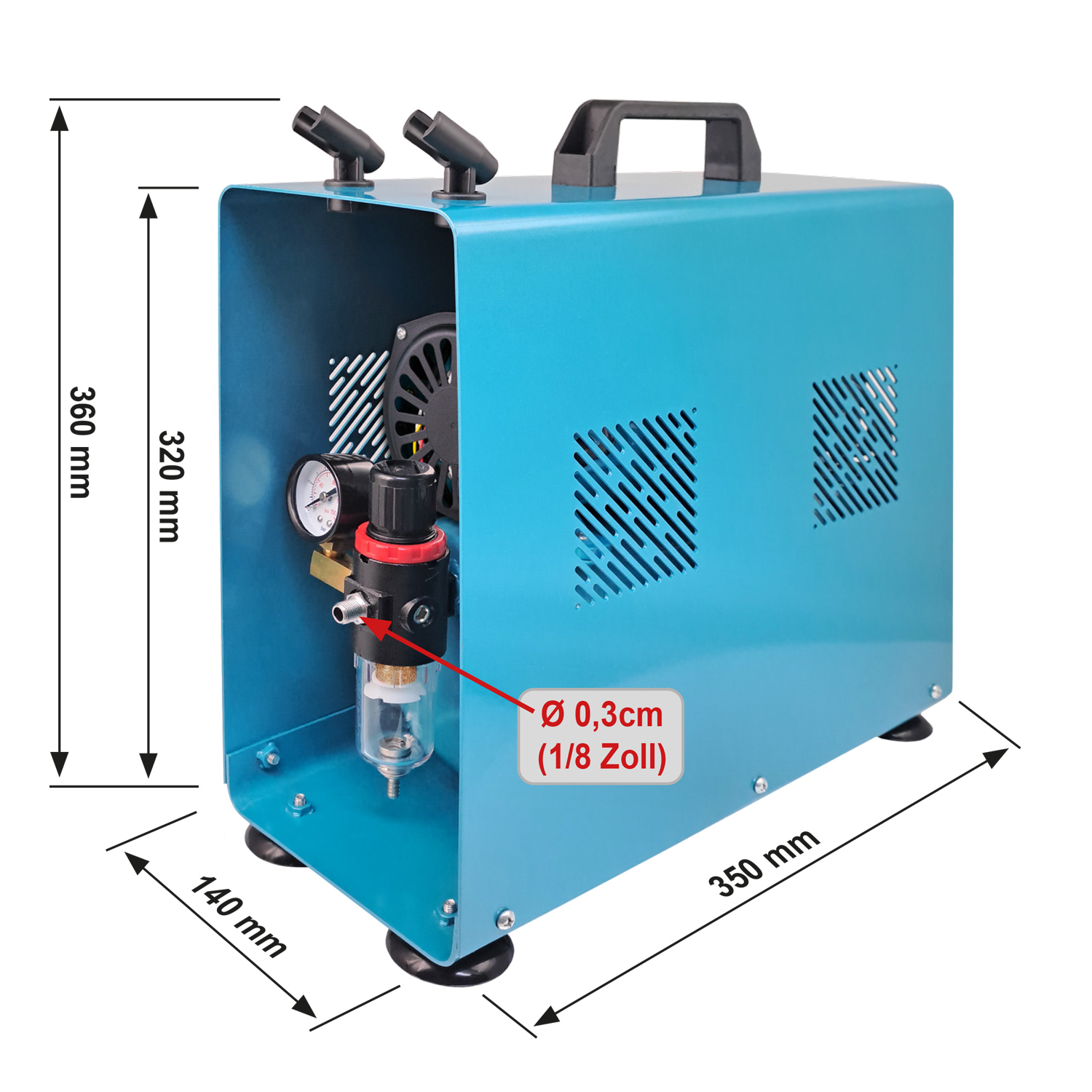 Profi-AirBrush Kompressor Universal II-C mit Schutzgehäuse ist ein sehr leiser mini Airbrush Kompressor, der sich für hohe Ansprüche im Hobbybereich und Profi-Anwendungen eignet. Energiesparsam durch Kompressor-Abschaltautomatik (4bar-Stop / 3bar-Start)! Anfänger und Profis können das Gerät in der Bildgestaltung, im Kunsthandwerk, Kosmetik, Tattoo, Körperfarben, Hobby, Modellspielzeug, Nail-Design uvm. verwenden. Den Kompressor Universal II-C kann man genauso als Luftquelle in Chemieindustrie, Laboratorien, medizinischen Bereichen, oder im Umweltschütz, Aquakultur, Lebensmittelindustrie und so weiter einsetzen. Er ist öl- und wartungsfrei.