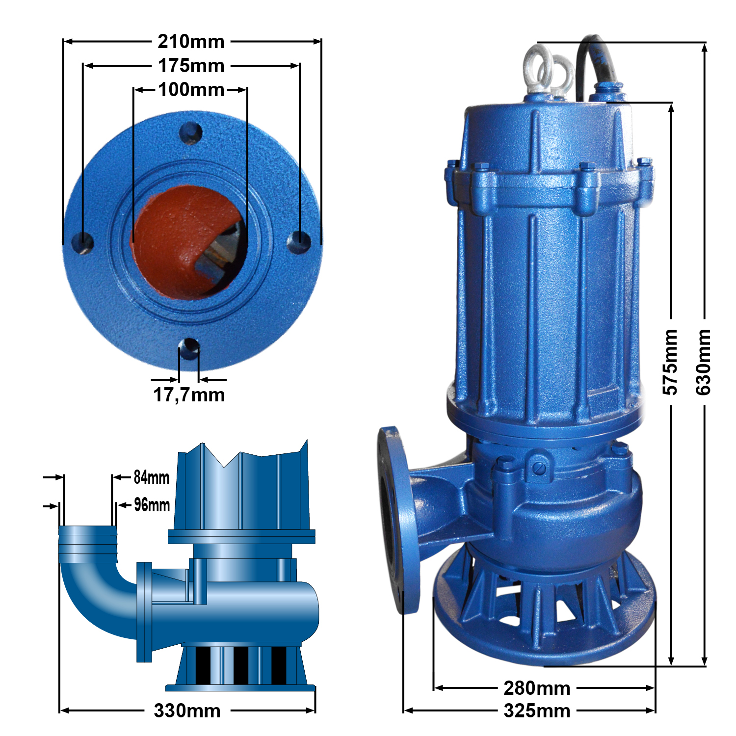 - Schmutzwasser-Tauchpumpe (Partikelgröße bis 35 mm)