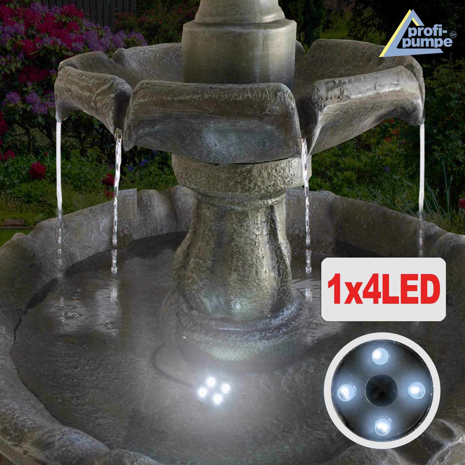 Solar – Brunnen “KLASSIK-GARTEN-5” mit LiIon-Akku & LED-Licht