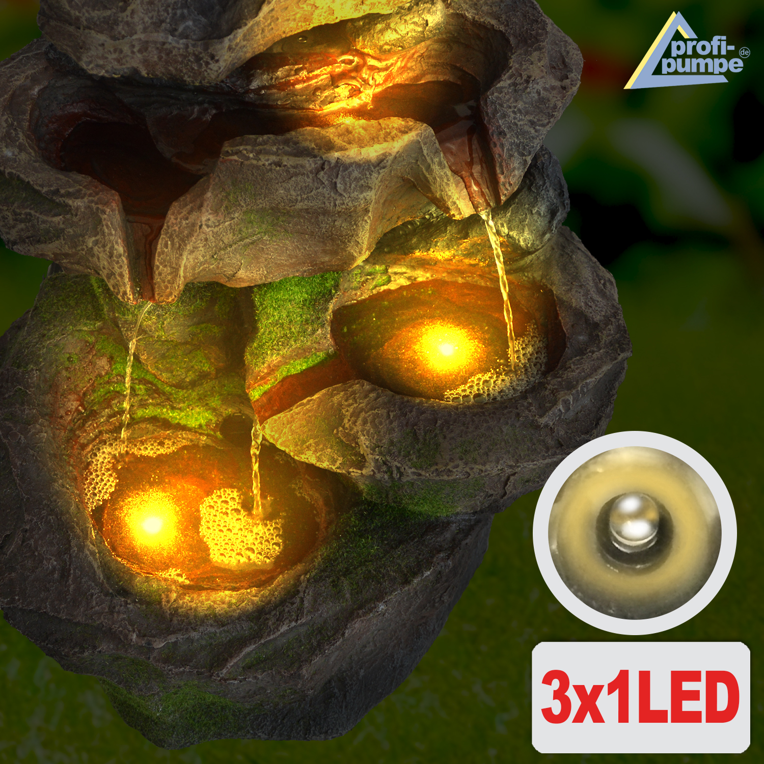 Durch eine realistische Nachbildung fügt sich die “STEIN-KASKADE SCHWARZWALD” in ihre natürliche Umgebung perfekt ein. Das beruhigende Rauschen des Wassers gibt jedem Teich eine besondere Note und das im Sonnenlicht funkelnde Wasser ist stets der perfekte Blickfang. Lassen Sie durch die Kraft der Sonne das Wasser fließen. Je stärker die Sonne, umso intensiver wird das Wasserspiel! An heißen Tagen sorgt der Gartenbrunnen auch für ein angenehmes Mikroklima.