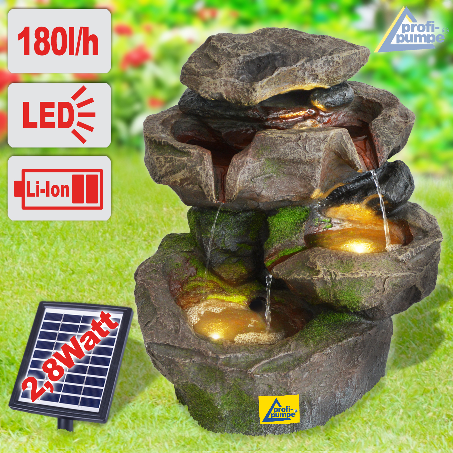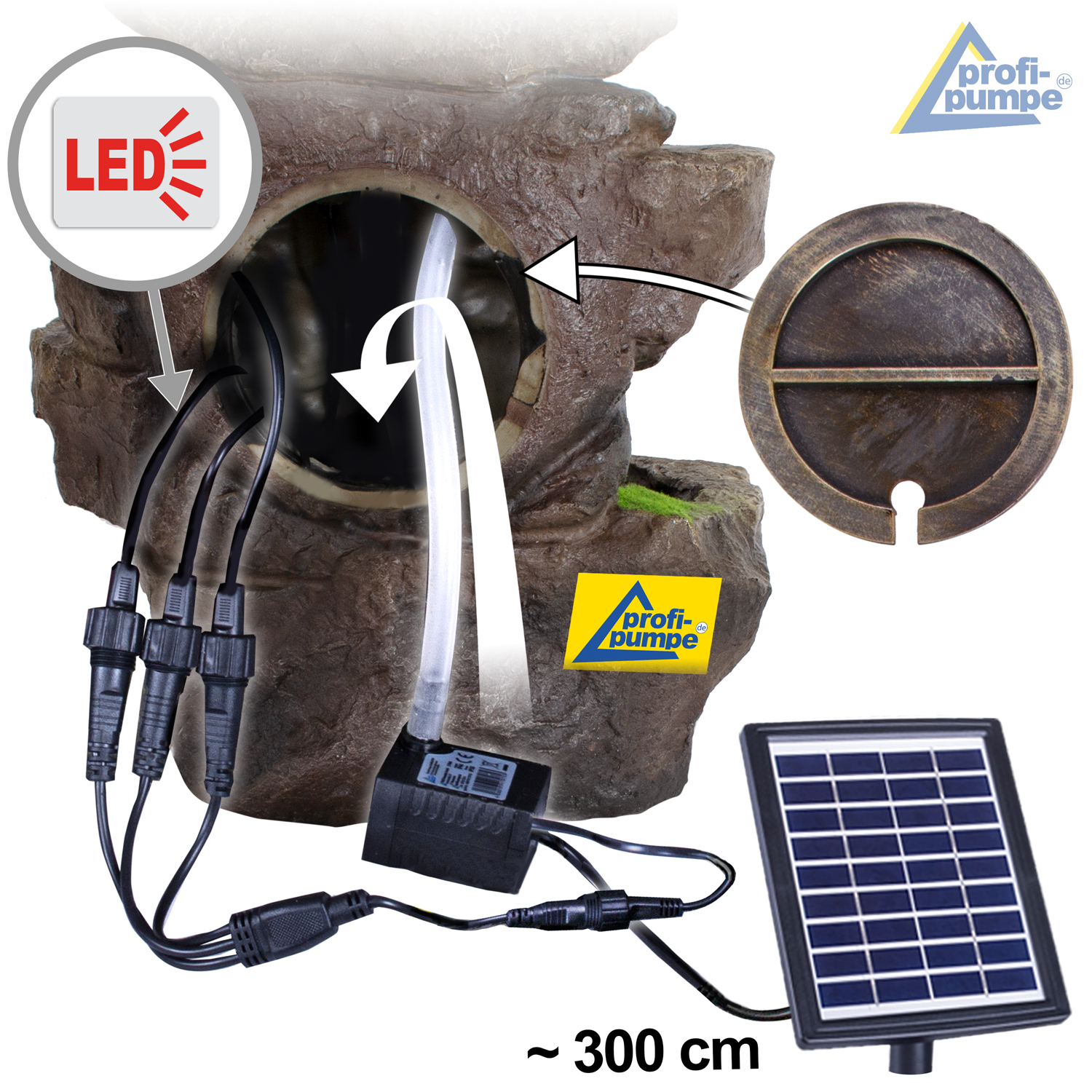 Solarbetriebener Garten-Brunnen mit Akku und LED-Lichtern