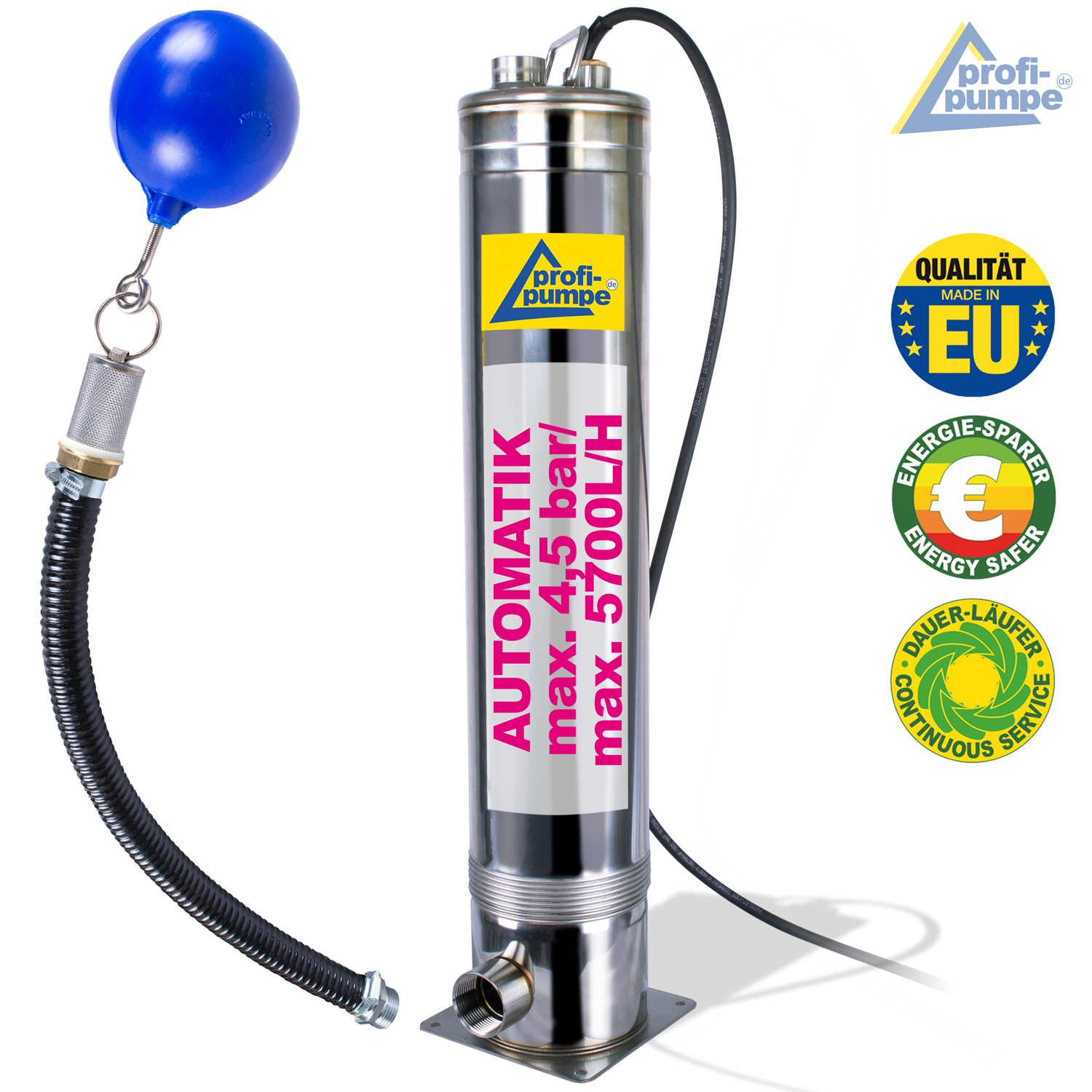 - Solide Qualitäts-Tauchdruckpumpe mit max 4,5bar und max 5700L/h