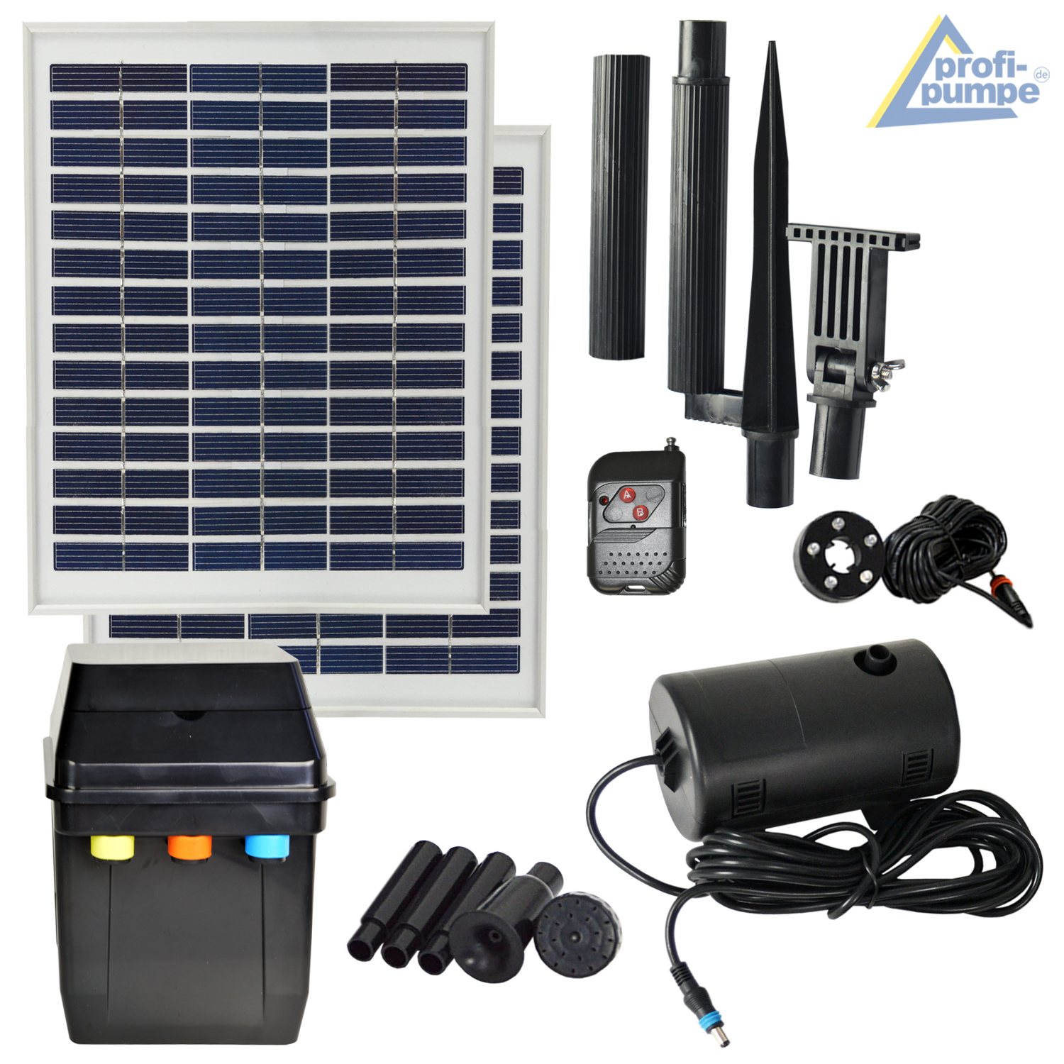 The Teichpumpen-Set Oasis 1601R mit LICHT, AKKU, FERNBEDIENUNG setzt die Kraft der Sonne in fließendes Wasser um. Hochwertige Komponenten bringen das Wasser in Bewegung, sobald das Sonnenlicht die Solarfläche erreicht. Je stärker die Sonne, umso intensiver wird das Wasserspiel! Das beruhigende Rauschen des Wassers gibt jedem Teich die besondere Note und die im Sonnenlicht funkelnde Fontäne ist stets der perfekte Blickfang. Fließendes Wasser sorgt für noch mehr Wohlgefühl in Ihrem Garten und sorgt für ein angenehmes Mikroklima an heißen Sommertagen.