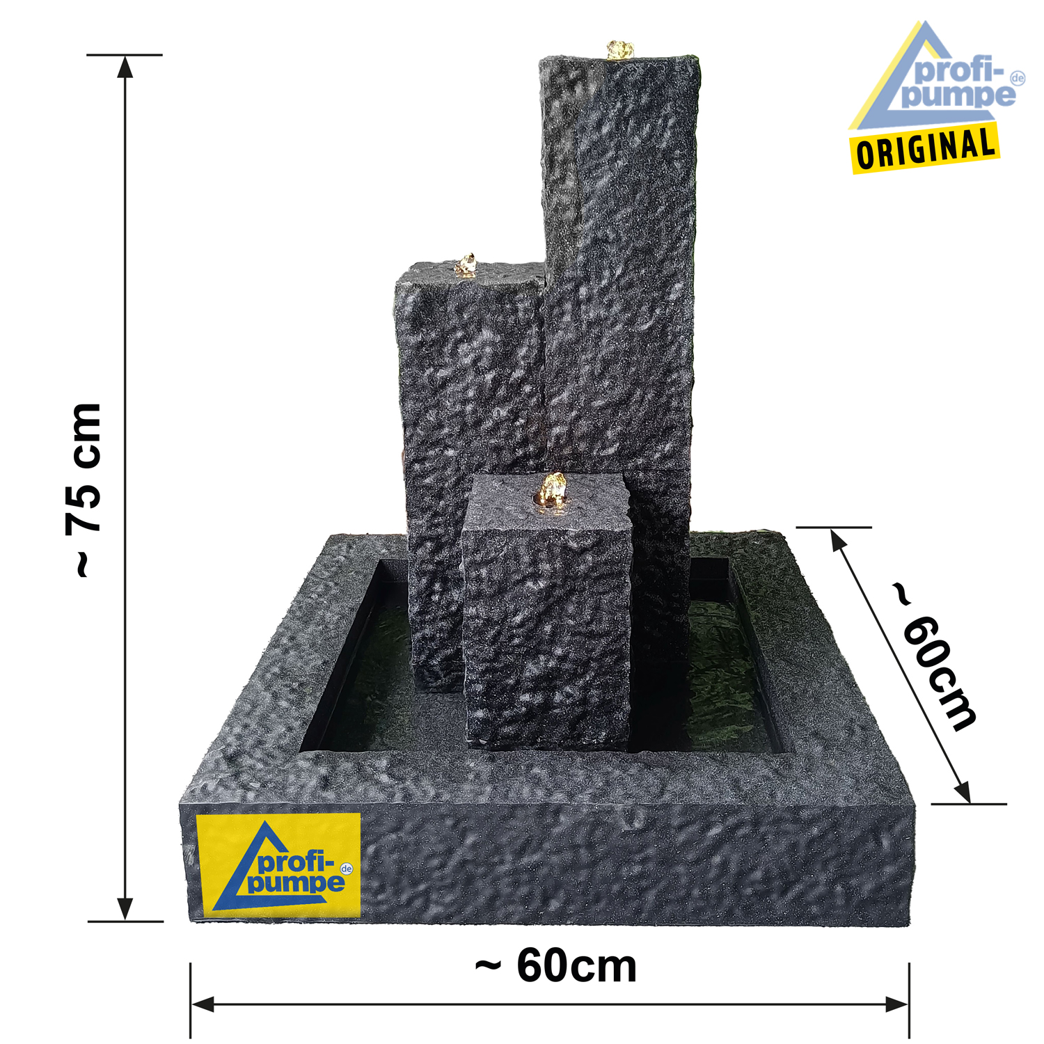 - steckfertiger, sofort einsatzbereiter Gartenbrunnen “TRIO-BASALT-2 dunkel”