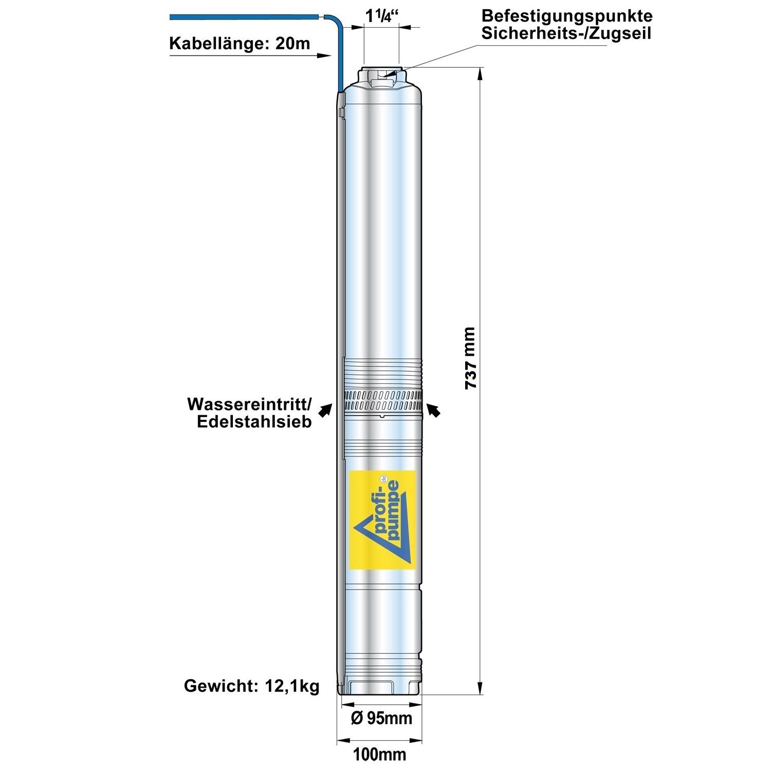 Edelstahl-Brunnenpumpe mit 750 Watt (P1= 0,75kW)