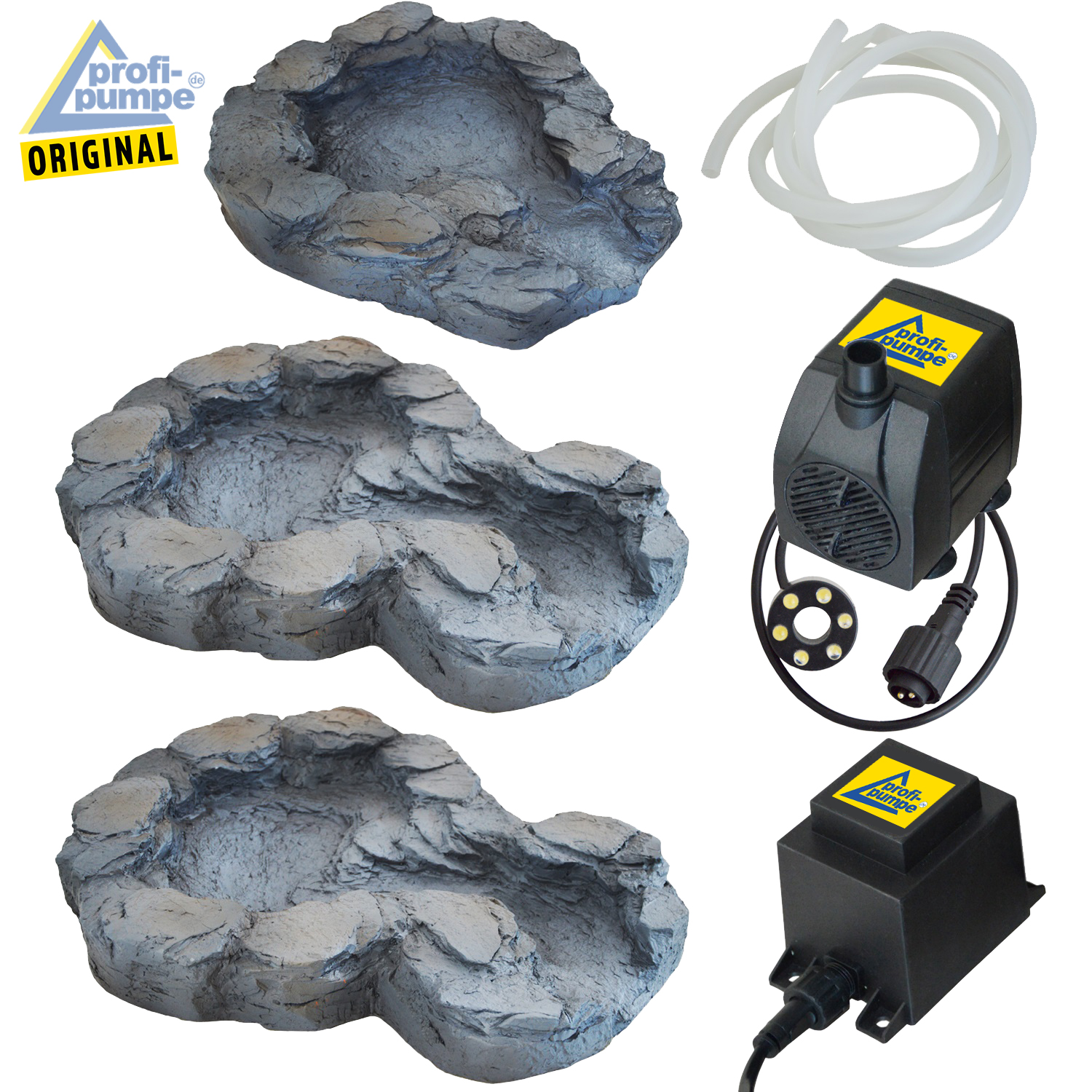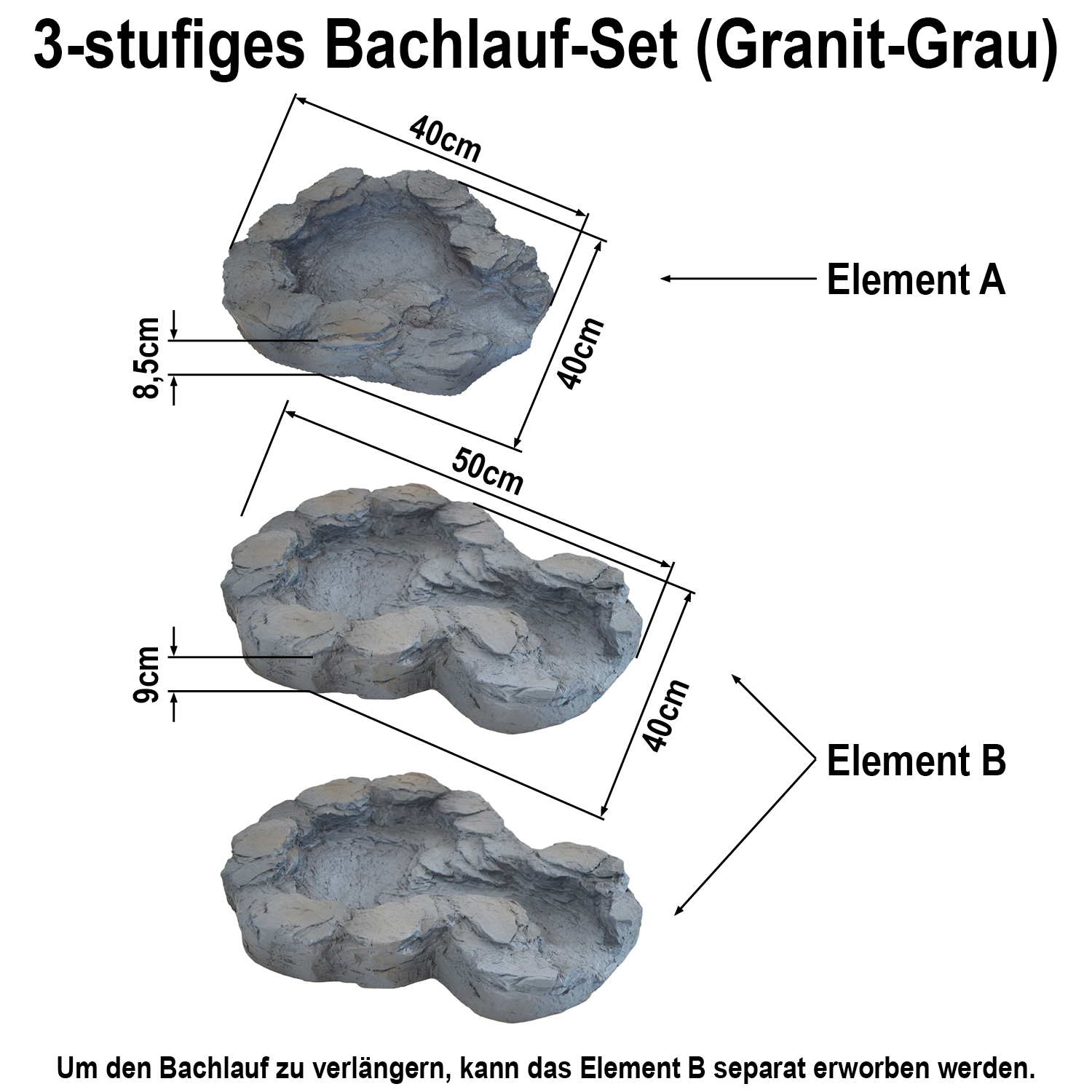 - 3-tlg. Kaskaden-Gartenbrunnen-Set zur effektvollen Bachlauf-Gestaltung