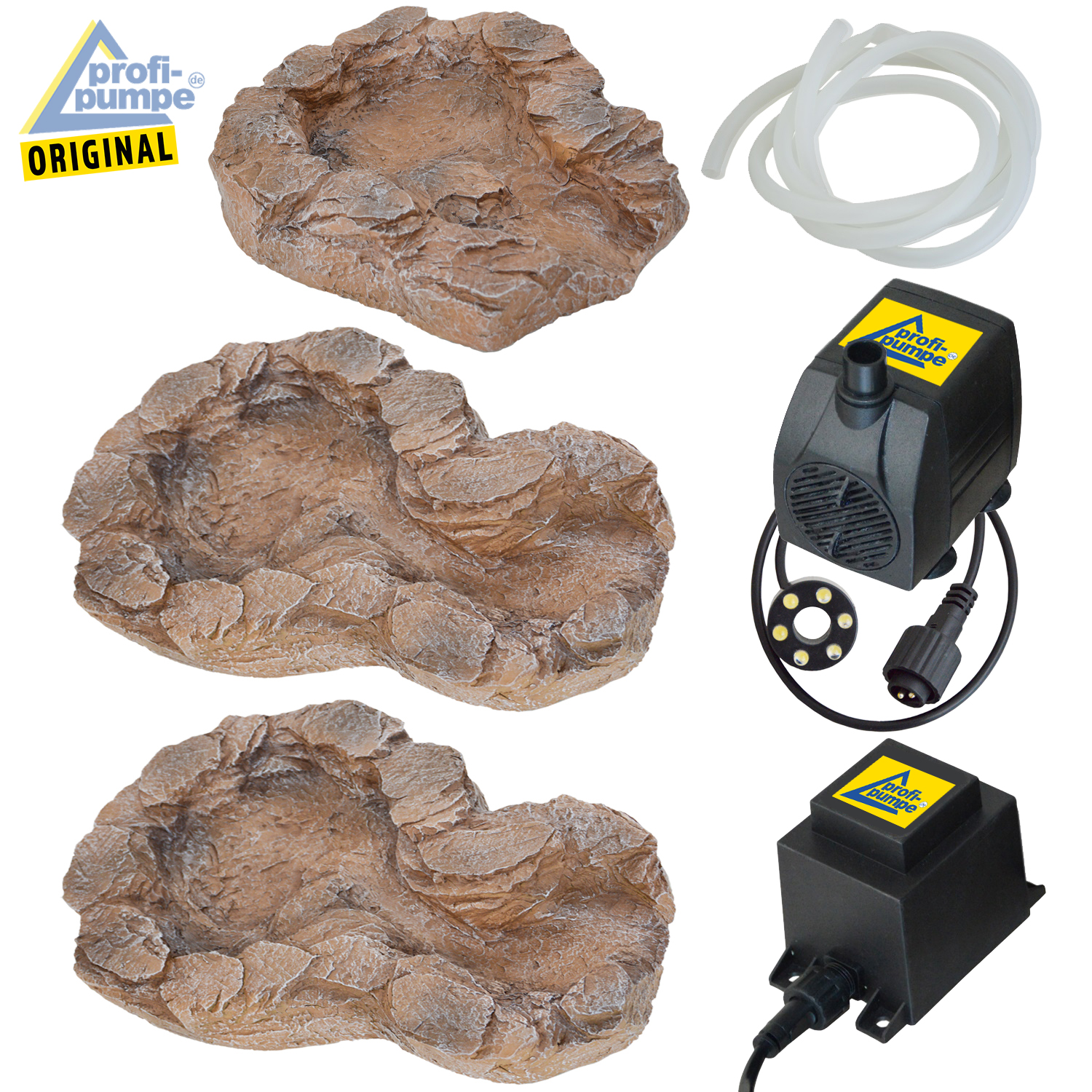 Sé el primero en opinar "Bachlauf QUELLBACH II sandstein, 3-teilig 230V-Pumpe und 1×6 weiß LED-Licht"