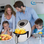 Der ECO AIR-PROFI DC-1400W ist standsicher und die Gefahren durch heißes Öl sind nicht vorhanden. Gut für die Kinder! Dank des beschichteten, herausnehmbaren Zubehörs (Frittierkorb und Frittierbehälter) ist die Reinigung ein Kinderspiel.