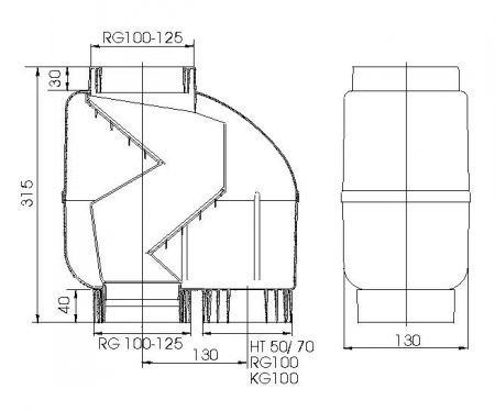 - Anschluss zum Regenspeicher: HT 50/70 und RG/KG 100
