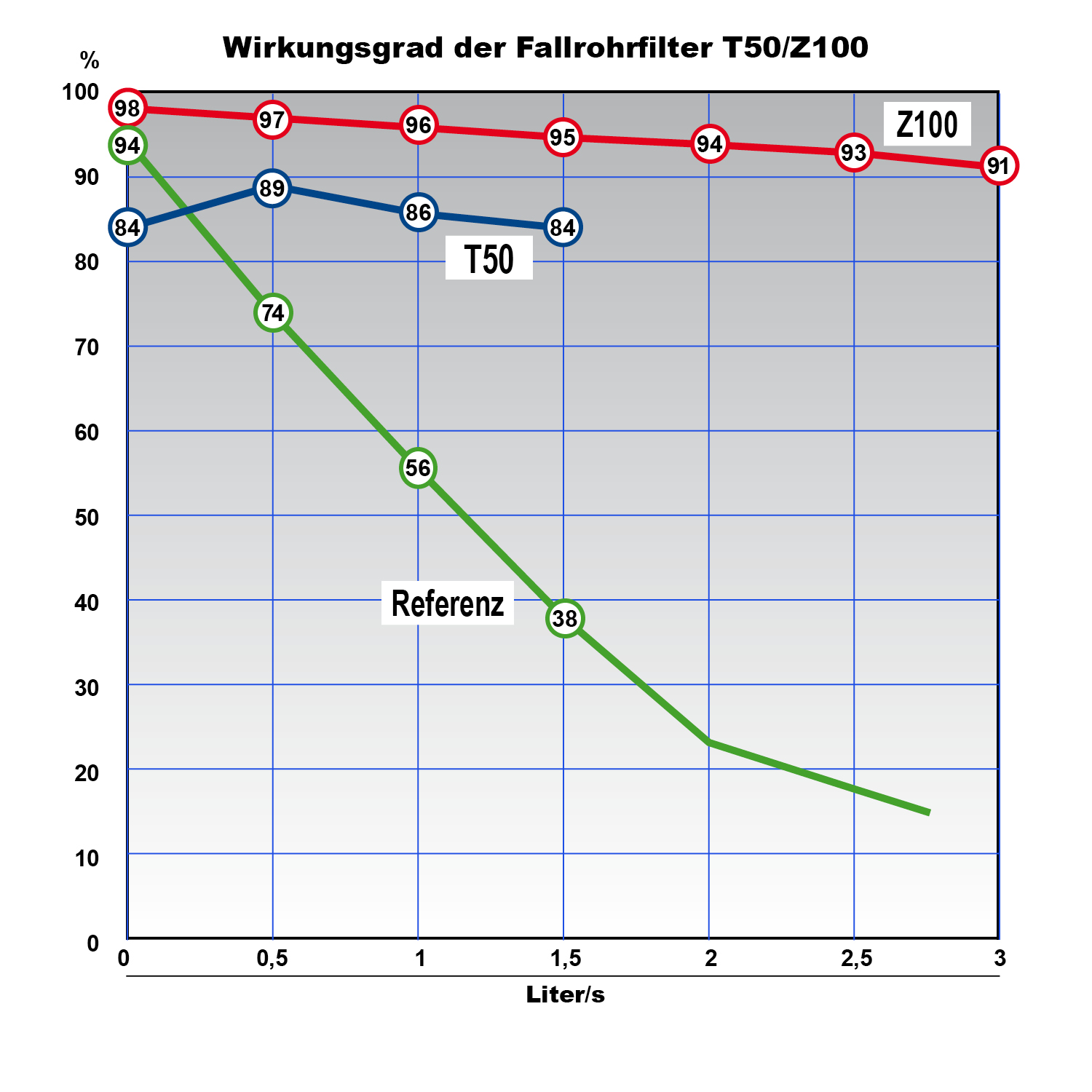 - Wirkungsgrad über 90% bei 3l/s