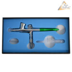 Die Airbrush-Pistole “Single-Action-Gun 207 D 0,3” ist ein Zweistoff-Zerstäuber, der nach dem Prinzip einer Strahlpumpe arbeitet, wobei Druckluft als Treibmittel verwendet wird. In Abhängigkeit von der Stärke des Luftstroms und der Menge der Farbe, kann man mit einer Airbushpistole feinste Linien aber auch große Flächen malen. Man kann Farbe deckend aufsprühen aber auch einen transparenten Farbfilm airbrushen.