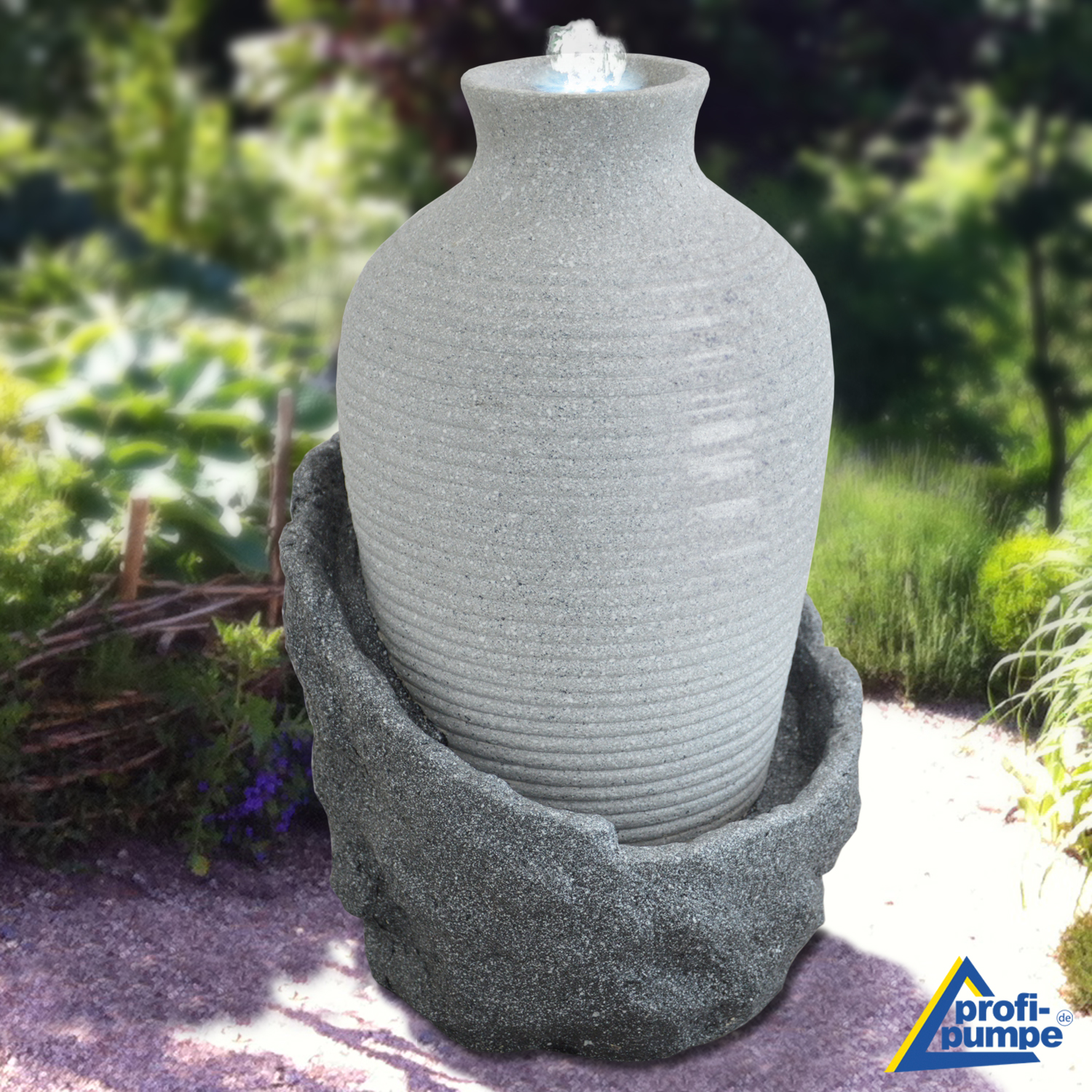 Eleganter Amphoren-Brunnen mit Beleuchtung