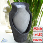 Der wirkungsvolle Zierbrunnen AMPHORE VENUS ist für den 230-Volt-Betrieb vorgesehen. Die Pumpe und die LEDs werden mit sicherer 12V-Niederspannung betrieben (Adapter im Lieferumfang enthalten). Alle Kabelverbindungen sind verpolungssicher, wasserdicht und absolut funktionssicher. Dank praktischer Steckverbindungen sind alle Komponenten jederzeit austauschbar. So können Sie den Wasserbrunnen AMPHORE VENUS und das fließende Wasser jahrelang genießen!