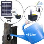 Die im Lieferumfang enthaltene Solarpumpe ist für den Betrieb bei Tag aber auch für die Nacht ausgelegt. Möglich macht das der eingebaute Li-Ion-Akku im Solarpanel. Der Akku wird bei Sonneneinstrahlung auf dem Solarpanel aufgeladen. So kann der “WALD-ZAUBER” auch bei schlechten Lichtverhältnissen oder nach dem Sonnenuntergang betrieben werden. Die maximale Förderleistung wird bei optimalen Bedingungen, wie strahlender Sonnenschein und ein aufgeladener Akku, erreicht. Nach einer Nacht schaltet die Pumpe automatisch in den Solarmodus, wenn ausreichend Sonnenlicht vorhanden ist. Die Akku-Funktion kann aber auch ausgeschaltet werden.