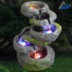 230V – Gartenbrunnen FELS-KASKADE geschwungen mit 4 RGB LED-Licht-230V