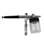 Die Airbrush-Pistole “Double-Action-Gun 134s” mit 0,2mm / 0,3mm / 0,5mm NADEL/DÜSE Kombination und 2 verschiedenen Farbbehältern (7ml und 22ml) ist besonders für den Beginner zum Kennenlernen der einzelnen Techniken und für ein zügiges Arbeiten optimal geeignet. Damit lassen sich sowohl feine Linien ziehen, als auch größere Flächen airbrushen. Für größere Farbmengen wird der 22ml-Glasbehälter und für kleinere Farbmengen der 7ccl Metallaufsatz verwendet. Mit der UNIVERSAL AIRBRUSH-PISTOLE DOUBLE-ACTION 134s macht das Hobby richtig Spaß!