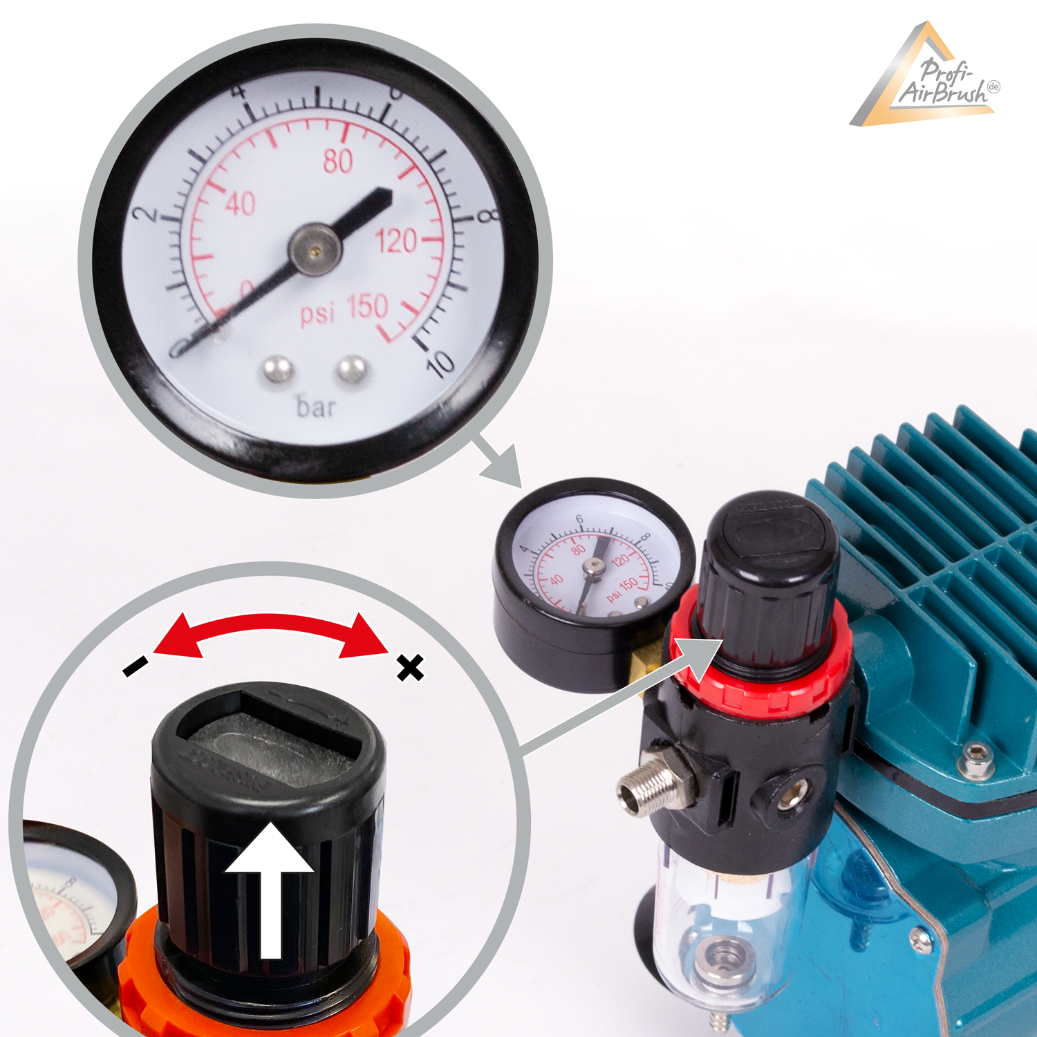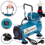 Questo sistema, privo di olio e di manutenzione Airbrush Kompressor Set Compact II ist fรผr Arbeiten mit allen handelsรผblichen Airbrush Farben geeignet. Mit nur 47dB ermรถglicht er angenehmes Arbeiten auch in kleineren, geschlossenen Rรคumen. Sein kompaktes Design und der integrierte Tragegriff erleichtern den mobilen Einsatz. Die Abschaltautomatik ermรถglicht einen stromsparenden Betrieb.