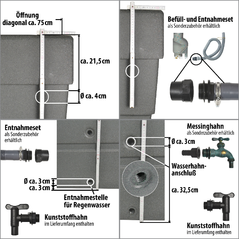 Zu den Regentonnen empfehlen wir, stets das passende Anschluss-Zubehรถr mitzubestellen: