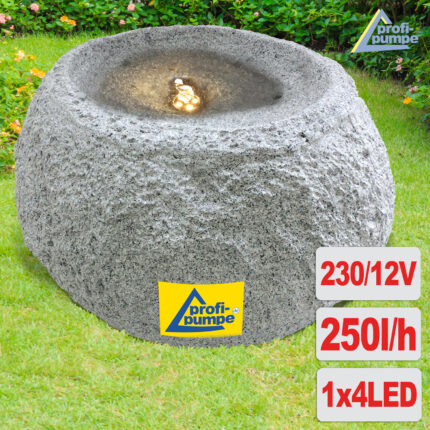 230V – Gartenbrunnen GRANIT-QUELLSTEIN mit LED-Licht